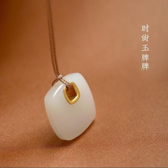 Hetian White Jade Pendant Plaque - Silver-Clad Gold Inlaid Jade Plaque