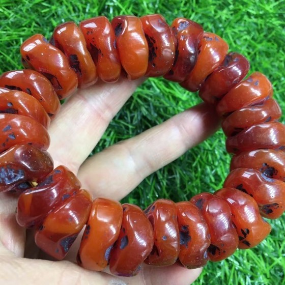 Vintage-Style Full-Color Barrel Beads Bracelet - 100% Natural Unprocessed South Red Agate Raw Stone
