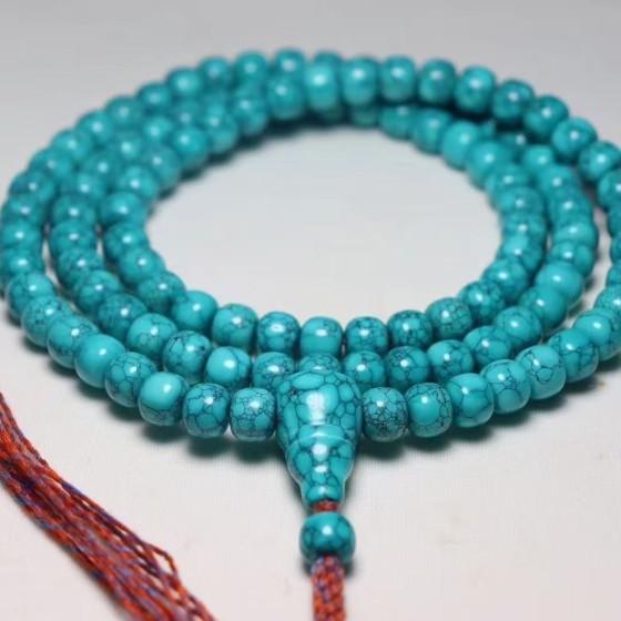 Buddhist Stone Turquoise with Waterweed Veins & Web Pattern Vintage-Style Beads - 108-Bead Necklace & Multi-Wrap Bracelet