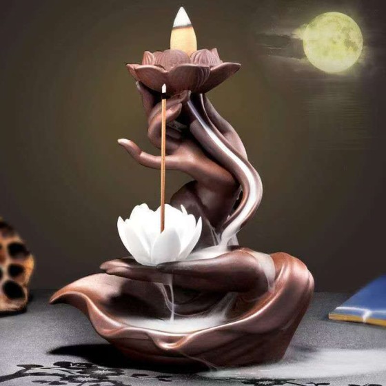 Zisha Inverted - Flow Incense Burner with Buddha's Hand Holding a Lotus | Ceramic Meditation Aromatherapy Device, Inverted - Flow Incense Lotus Holder