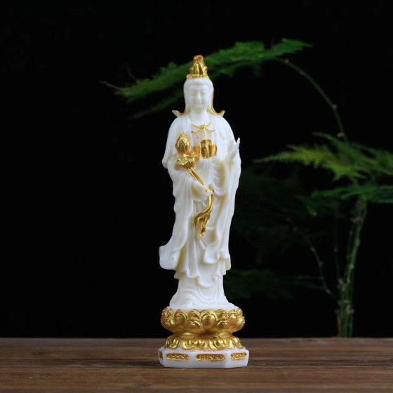 Seated Guanyin Bodhisattva on a lotus, resin Guanyin Buddha statue, water glass - like material, home ancestral hall or temple offering Buddha utensils