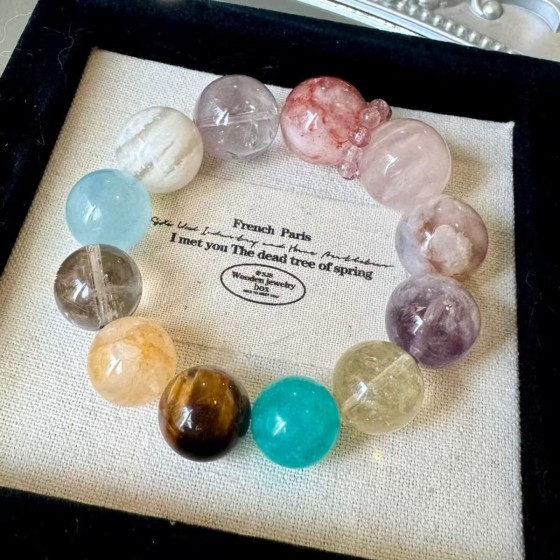 Buddhist Stone Crystal Multi-Treasure Natural Bracelet - Customizable Multi-Treasure Wealth-Attracting Aquamarine Crystal Bracelet, a Fortune-Turning Gift