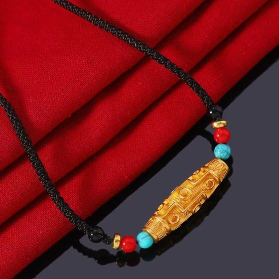 Tibetan-Style Nine-Eyed Dzi Bead Alloy Pendant - Gold and Silver Color, Auspicious & Peaceful, Necklace & Sweater Chain