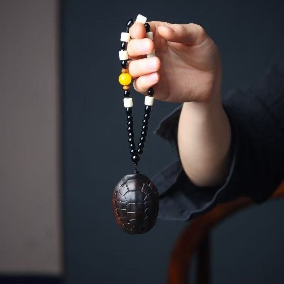 Agarwood Hand - held Ornament in the Shape of a Tortoise Shell, Symbolizing "Wealth Over the World", Hand - carved, Can be Matched with a Necklace for Wearing