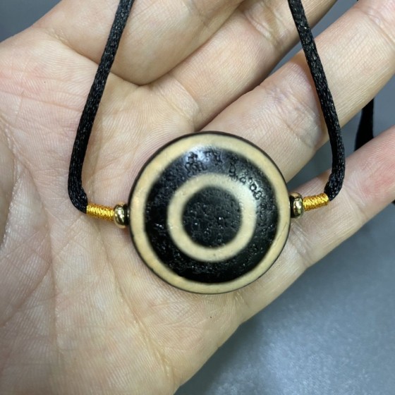 Tibetan - style Clavicle Chain with Double - sided Panel - eyed Dzi Bead Made of Ivory - yellow Agate in Traditional Tibetan Method