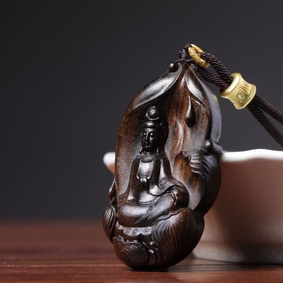 High - end Dara Gan Agarwood Free - form Carving of Guanyin of the Water - dripping Pose, Hand - carved