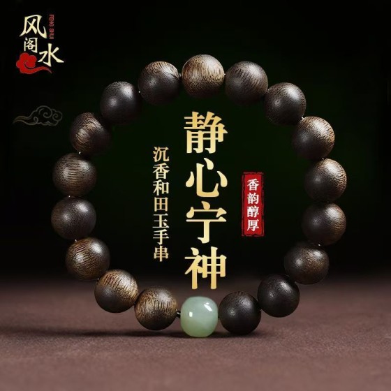 Buddha Stone Fengge Agarwood and Hetian Jade Series | Meditation - calming Hand - strung Bracelet, with Rich Aroma and Natural Materials