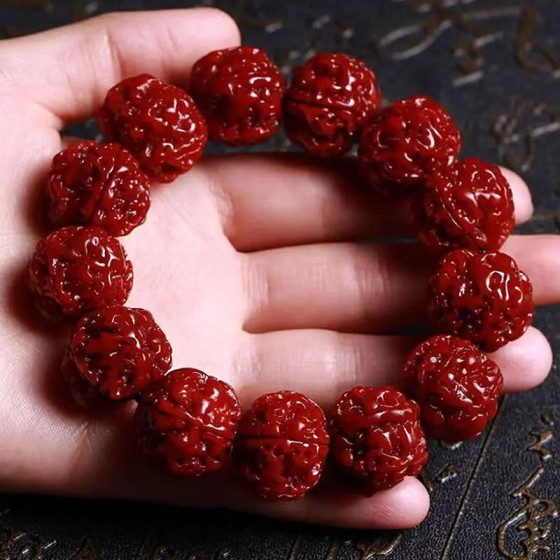 Buddha Stone Vajra Bodhi Hand - strung Bracelet, with Natural Brain - like Patterns, Ruddy Patina, Handmade Artwork for Collectors, Bodhi Seed Rosary