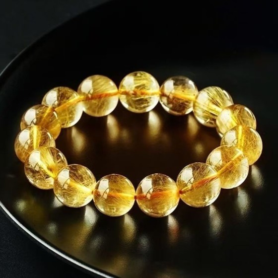 Natural Pure Golden Silk Jade Violet Bracelet, Unisex Beaded Bracelet