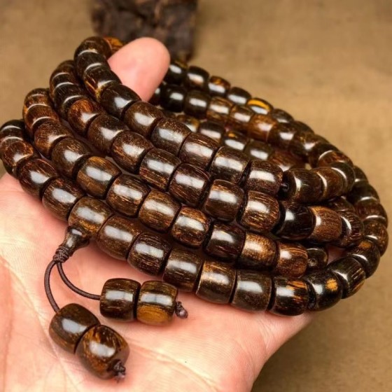 Buddha Stone Natural Papua Agarwood Bead Bracelet, Handmade Buddhist Rosary