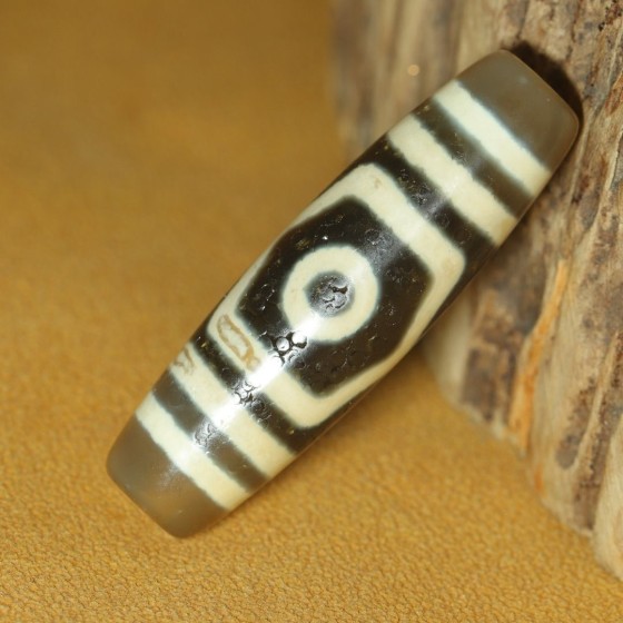 Tibetan Oil-Permeated Dzi Bead - Three-Eyed Dzi Bead
