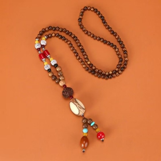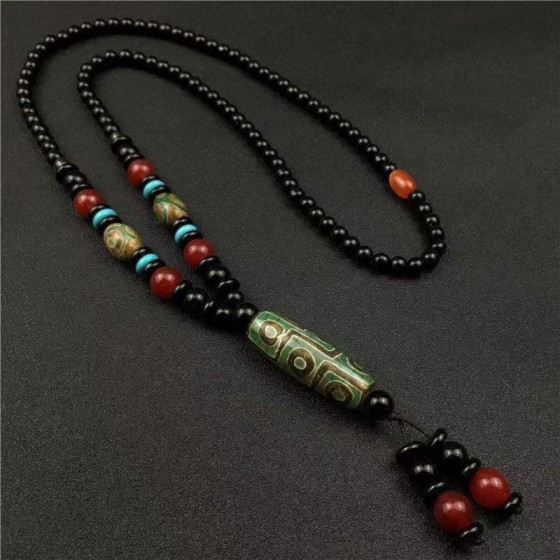 Tibetan Dzi Bead Ethnic Nine-Eye Necklace - Agate Sweater Accessory