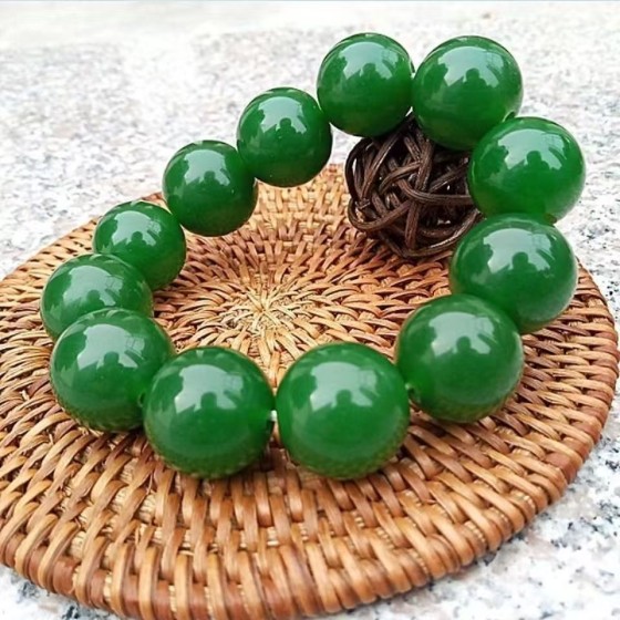 Xinjiang Jade Bracelet - Jasper Green Color, Spinach Green Beaded Bracelet