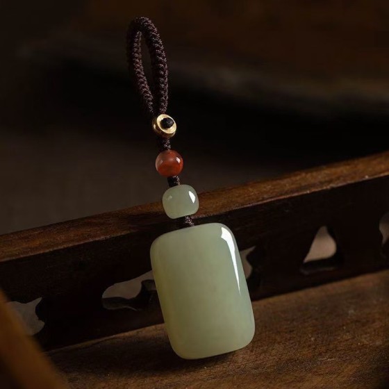 和田玉天然青玉无事牌汽车钥匙扣挂件玉佩