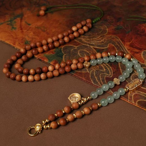 佛石绿松石水草纹网花老型珠108颗项链多圈手链