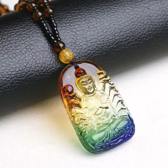 藏传虎牙天珠镶嵌 无相佛珐琅虎牙吊坠锁骨链