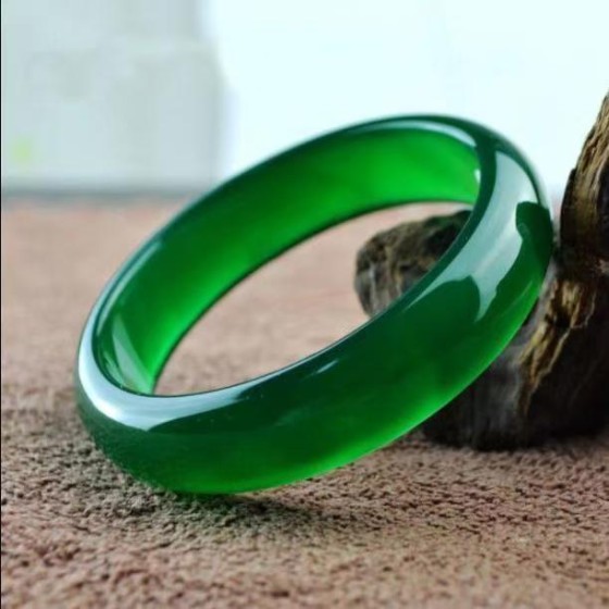 巴西冰种绿玉髓碧玉手镯玛瑙翡翠色玉石饰品