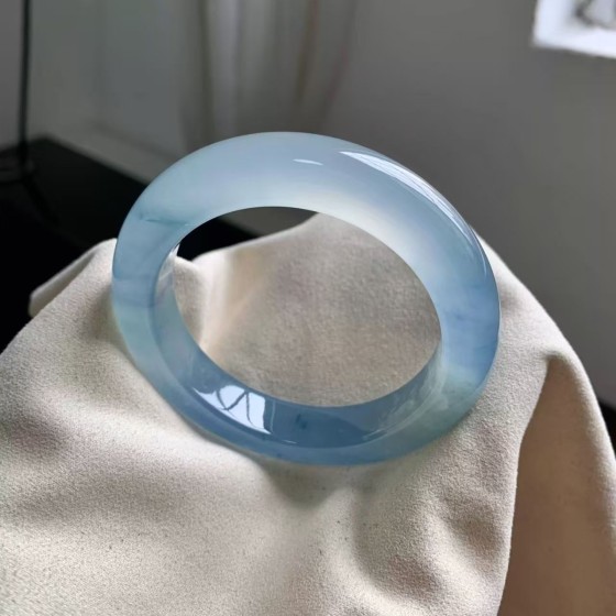 蓝猫眼玉镯冰透山水蓝水玉手镯玉髓玉石手镯 天空蓝玉器手镯